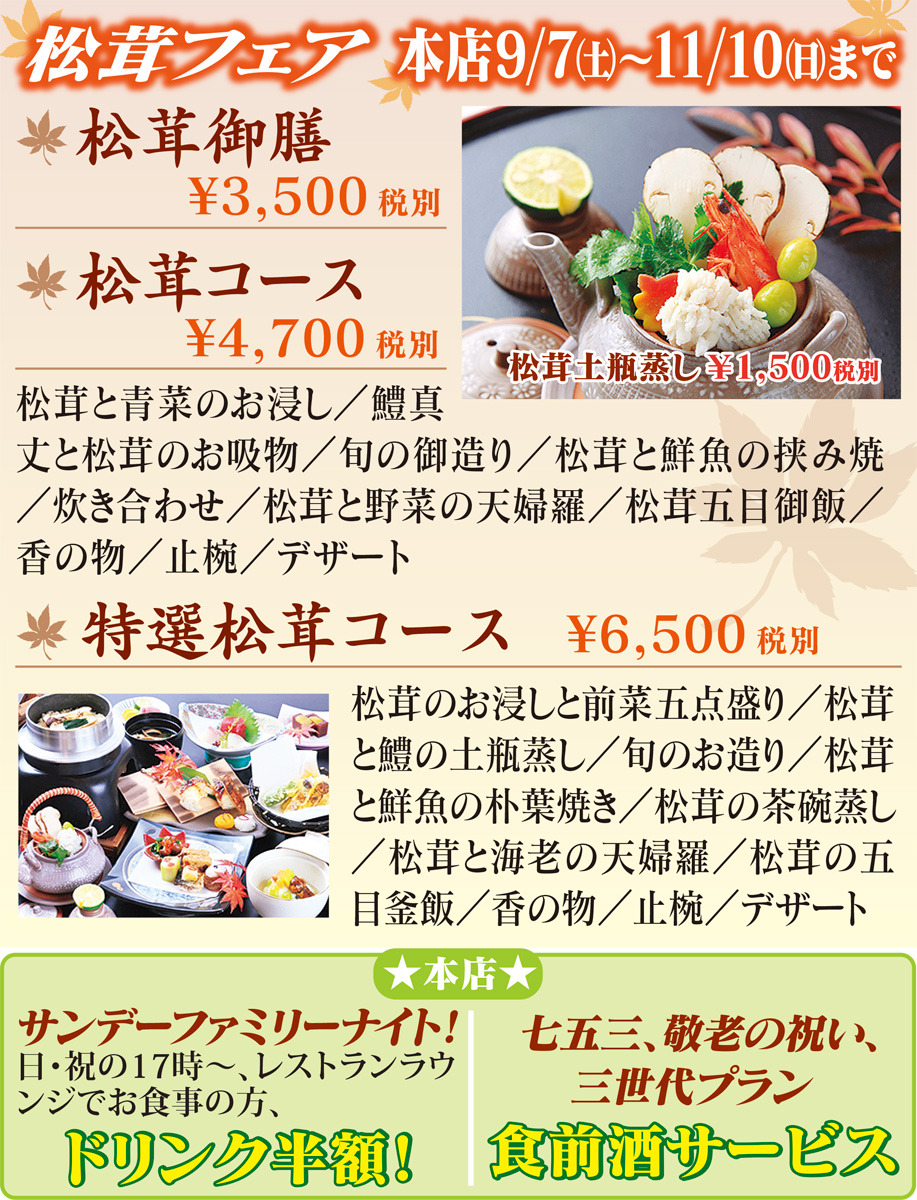 ホテル精養軒 七五三 祝賀会 人気の松茸フェアも エポックなかはら 国際交流センター kcci4店舗で秋の会食 忘新年会 謝恩会も承り中 ホテル精養軒 中原区 タウンニュース
